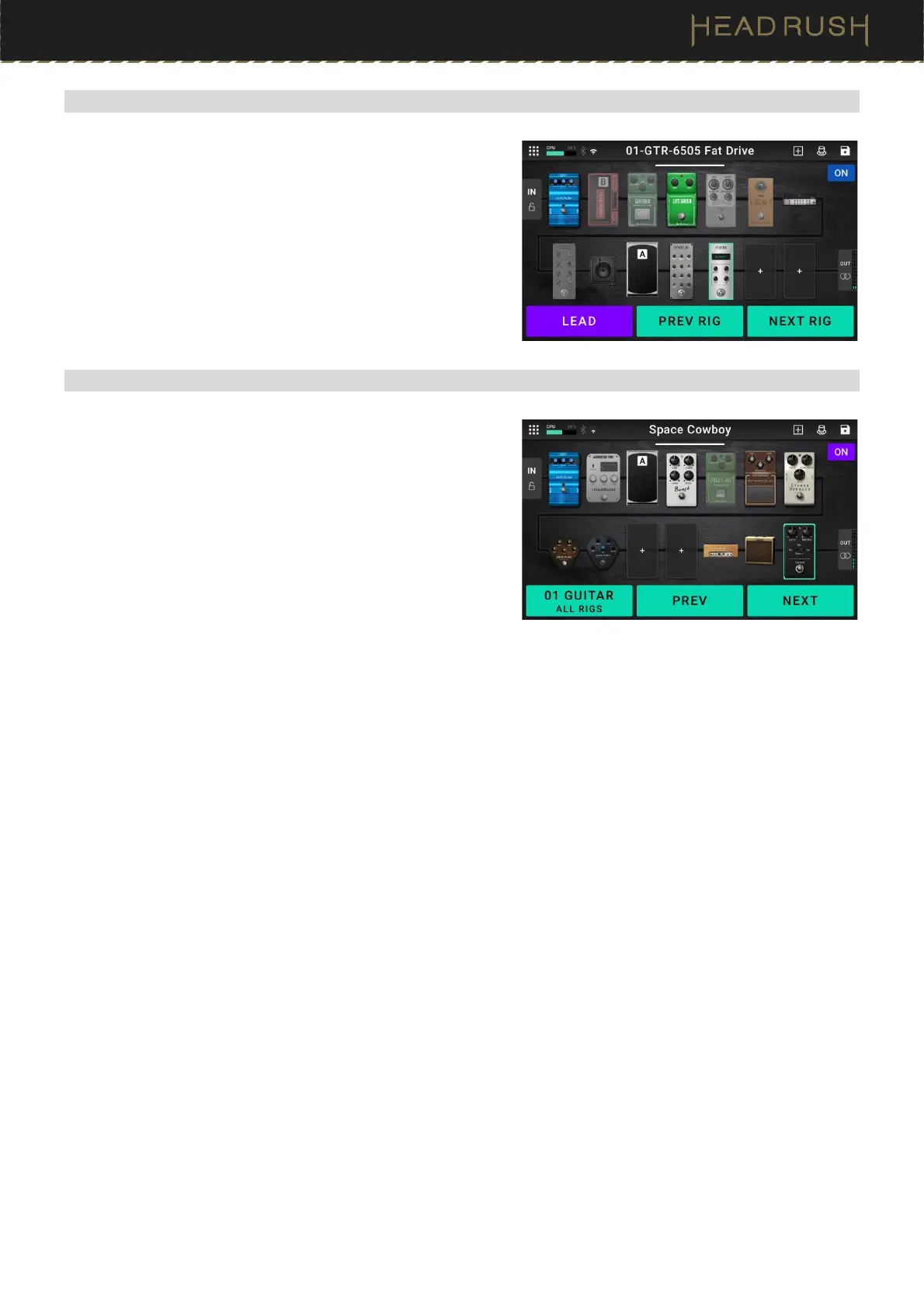To enter the All Rigs setlist, press and hold footswitch 1.