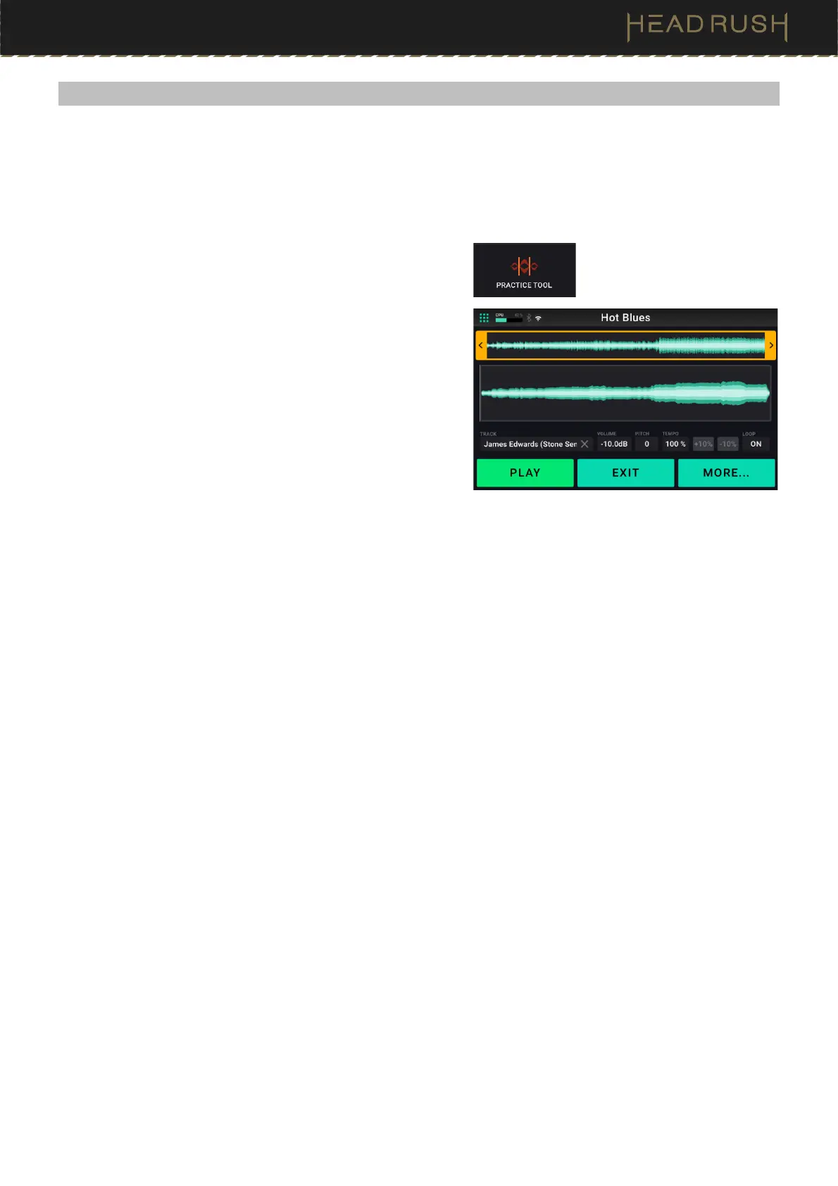 Flex Prime includes a convenient built-in Practice Tool that you can use to play along with songs from your Flex