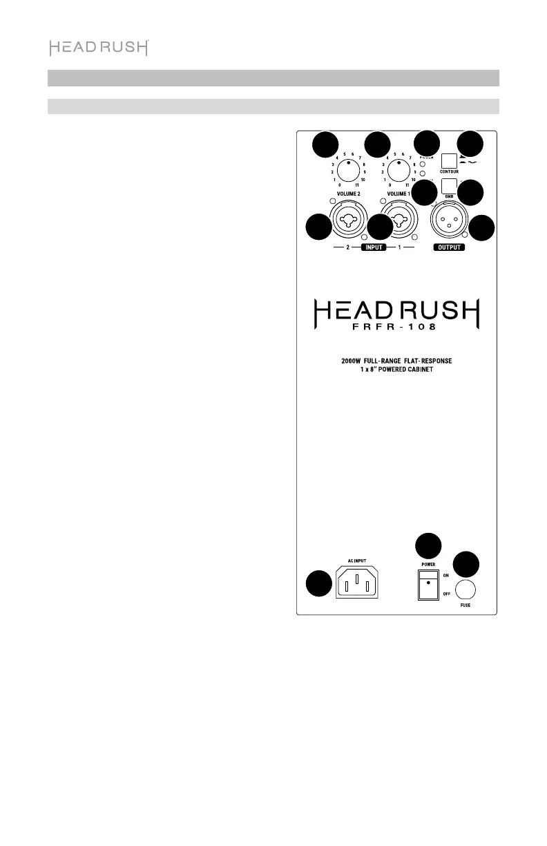 9. Contour : Enfoncer ce commutateur permet d’accentuer les basses et hautes