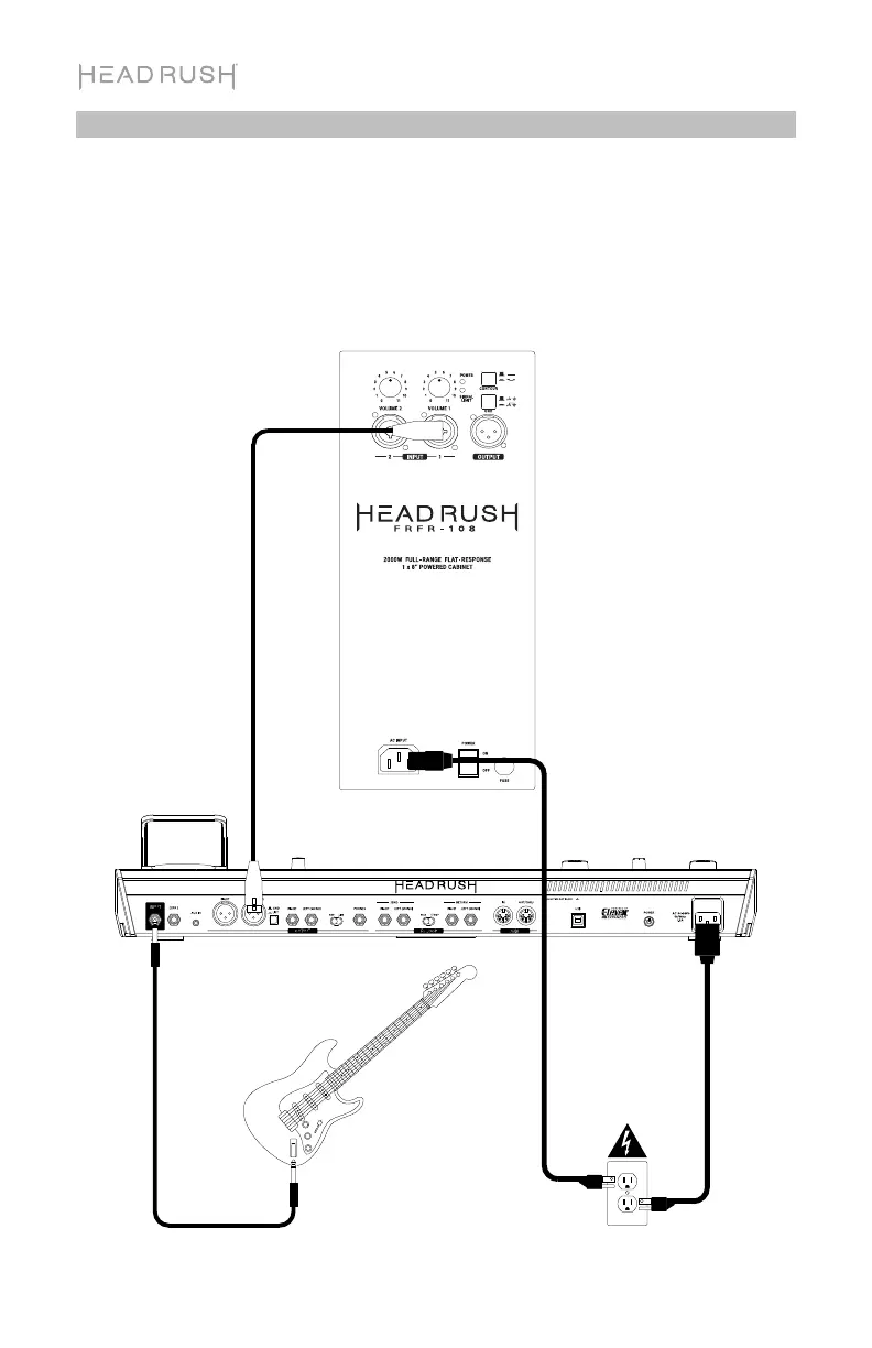 Collegare luscita Left (Mono) del proprio HeadRush Pedalboard all’ingresso di un FRFR-108.