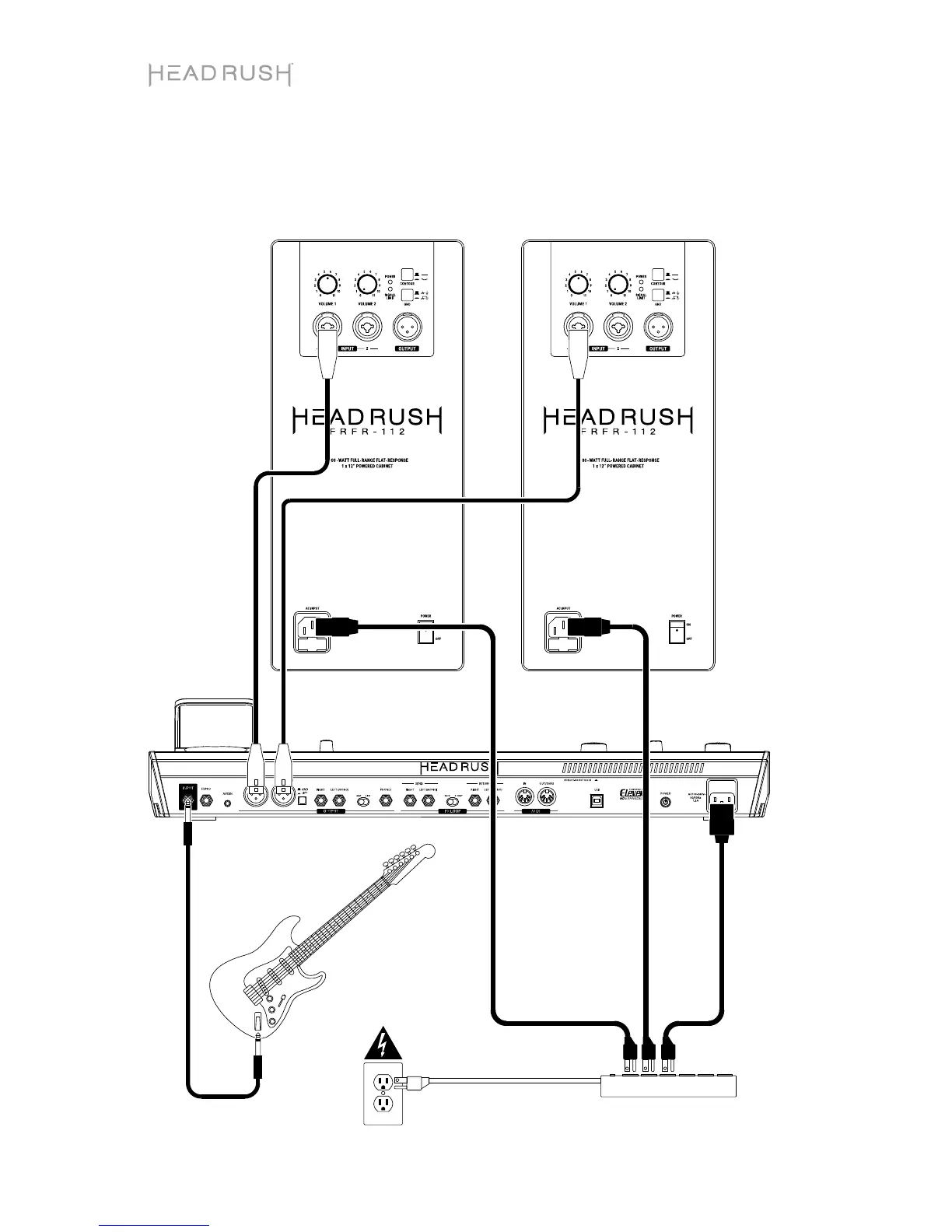 Verbinden Sie die Right und Left (Mono) Outputs Ihres HeadRush Pedalboard mit den