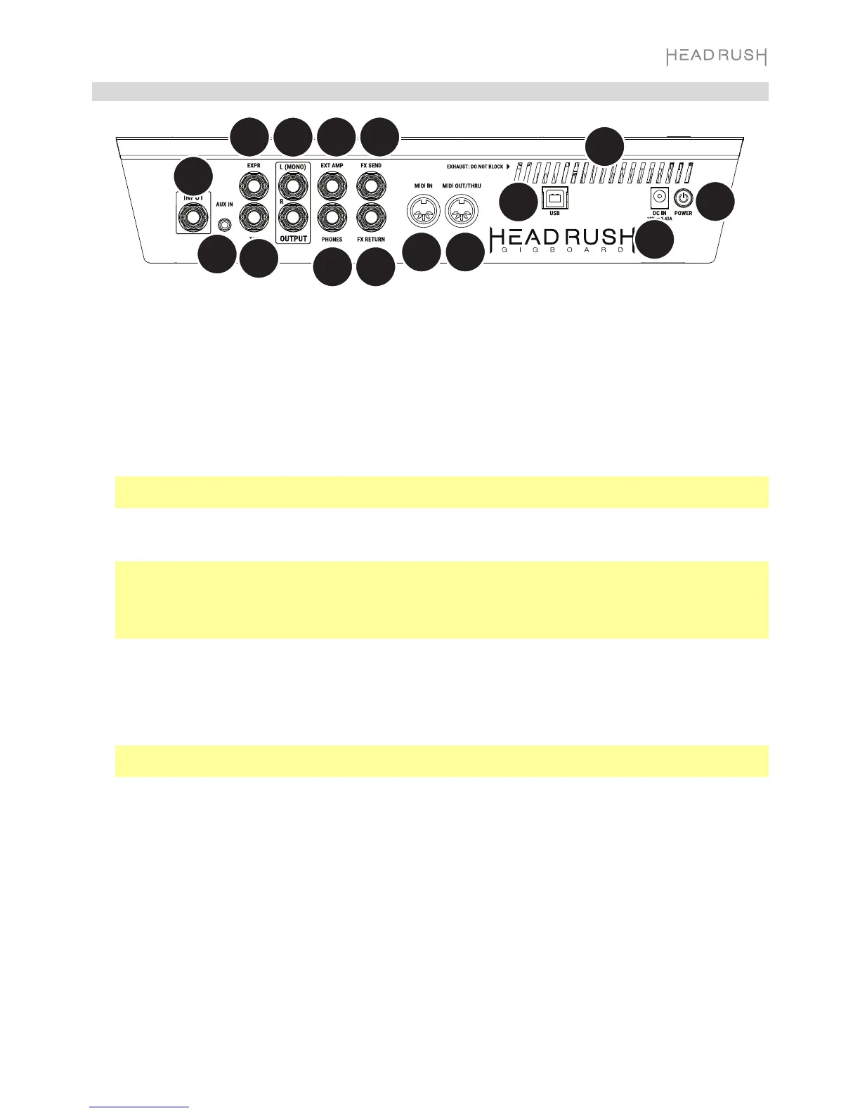 13. Ventilación: Asegúrese de que esta ventilación no se encuentre obstruida mientras utiliza la HeadRush