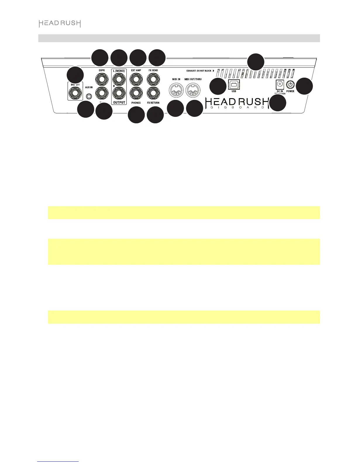 13. Vent: Make sure this vent is unobstructed while using HeadRush Gigboard.
