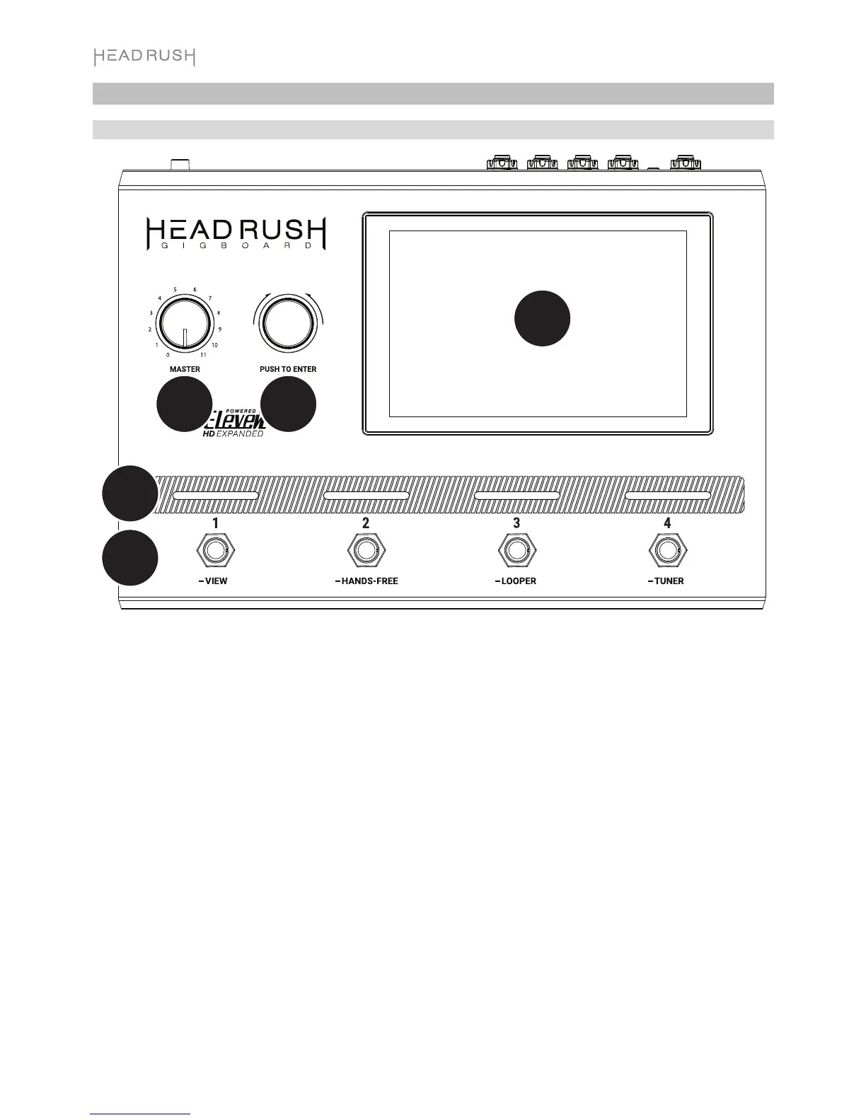 dell'HeadRush Gigboard. Toccare il display (e servirsi dei comandi hardware) per controllare l'interfaccia. Si