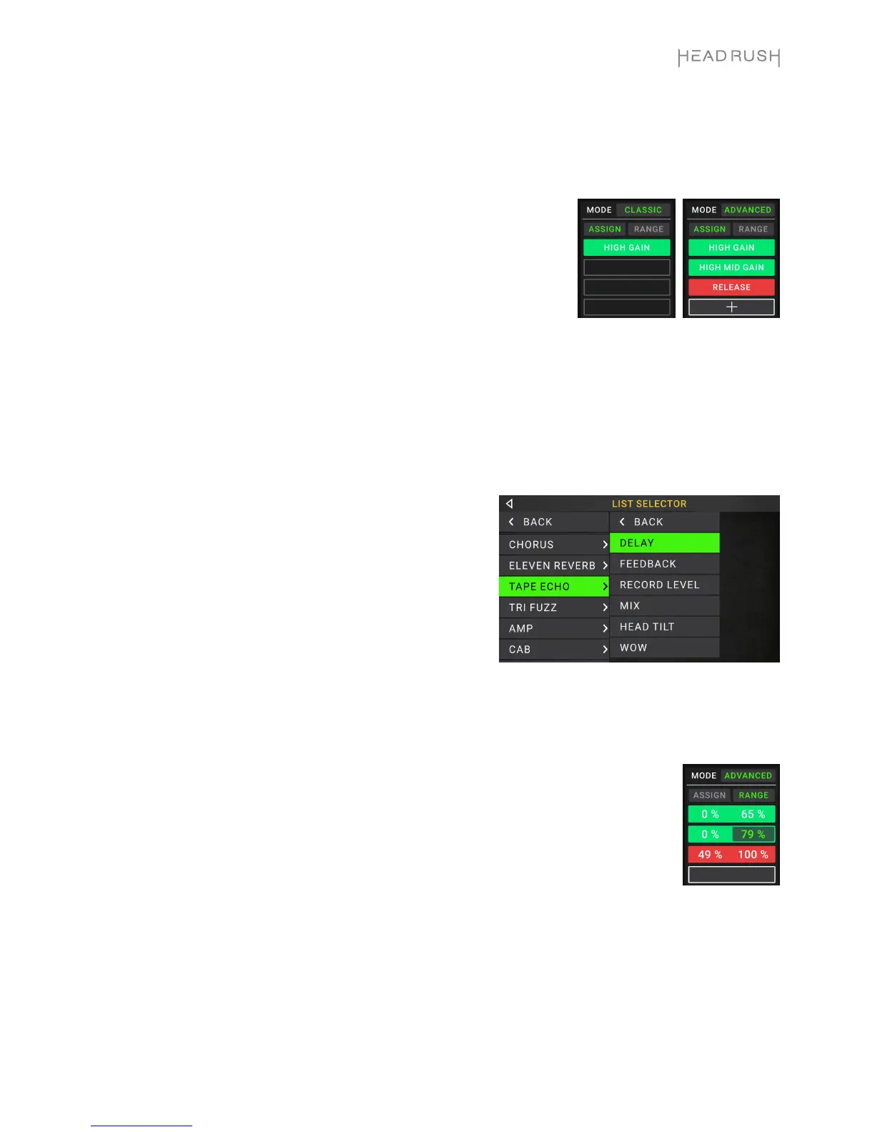• Advanced: si può assegnare fino a un massimo di quattro parametri a ciascun pedale di espressione (A e