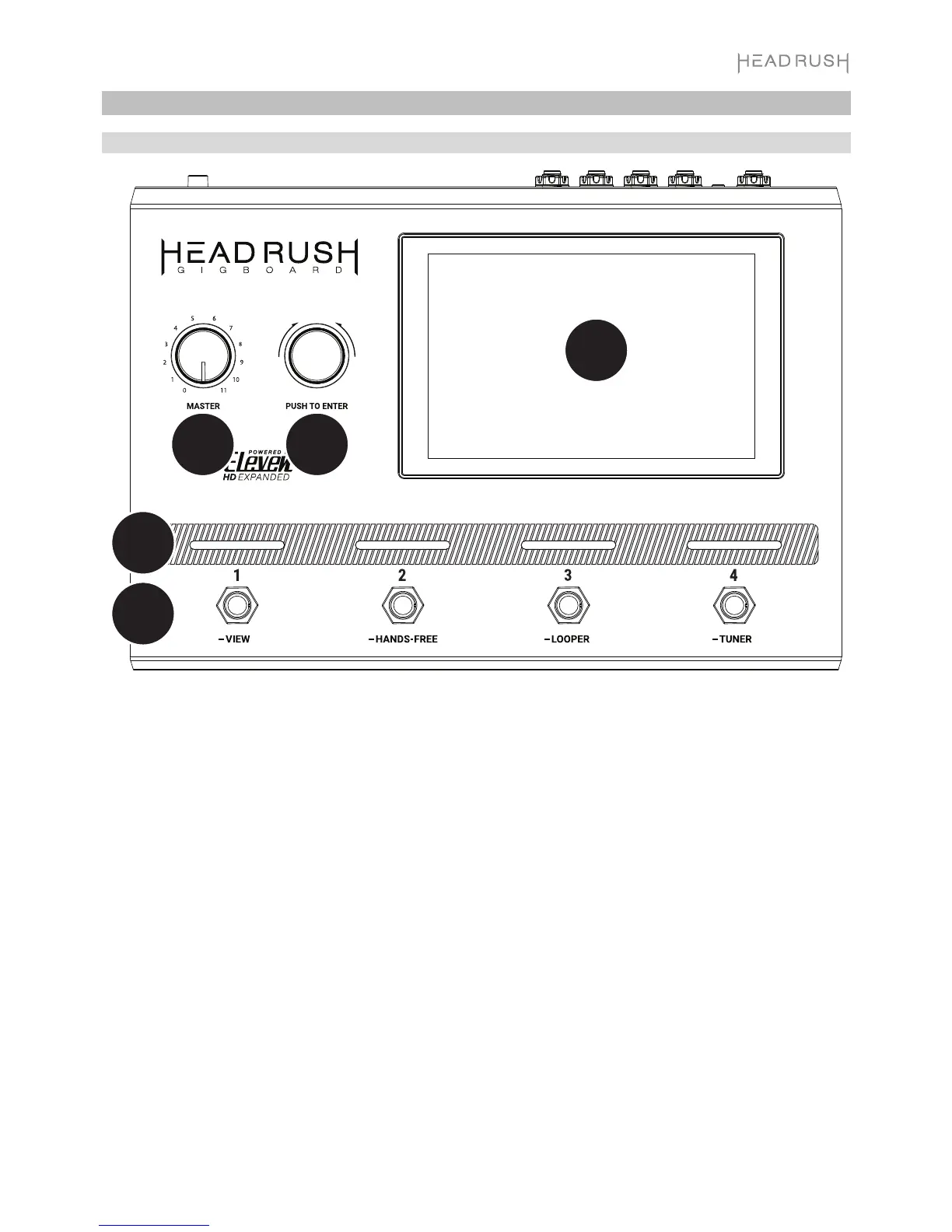 1. Display: Das Vollfarb-Multitouch-Display zeigt Informationen, die den aktuellen Betrieb des HeadRush