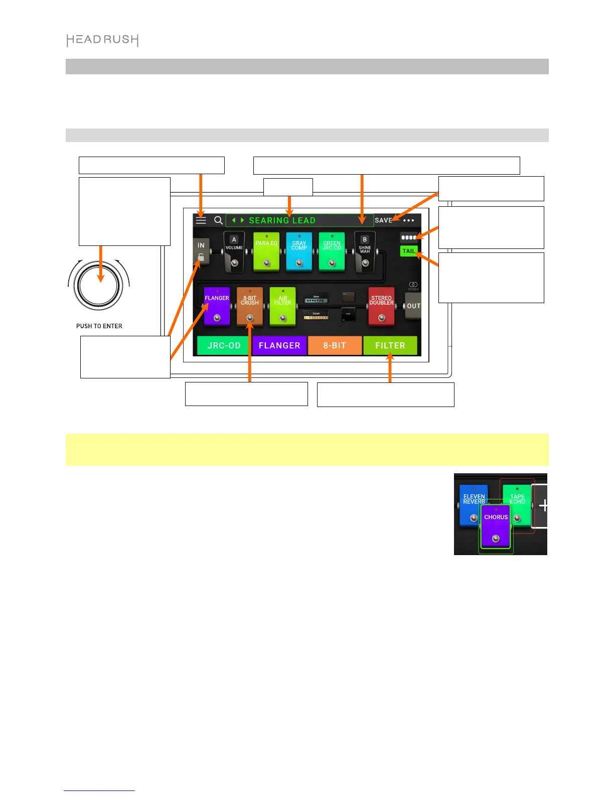 headrushfx.com, um die komplette Bedienungsanleitung für detaillierte Informationen herunterzuladen.