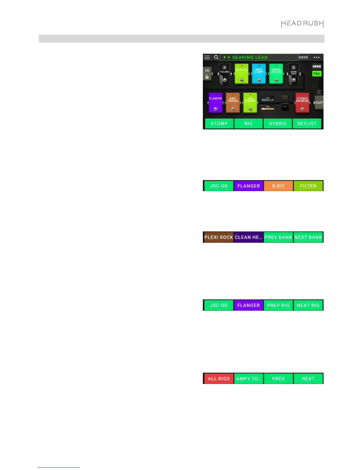 entsprechen: Stomp, Rig, Hybrid und Setlist.