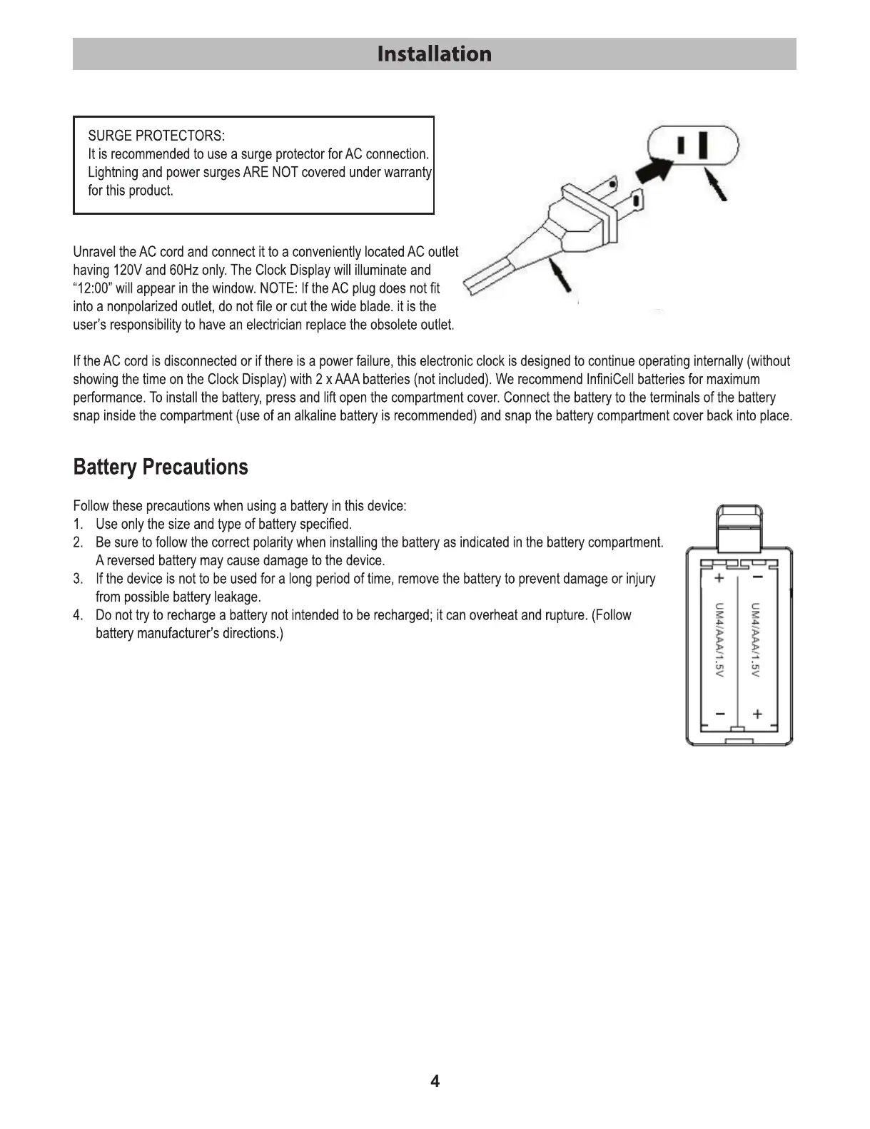 HEADRUSH HRCR 513 - Installation; Surge Protectors; Battery Precautions