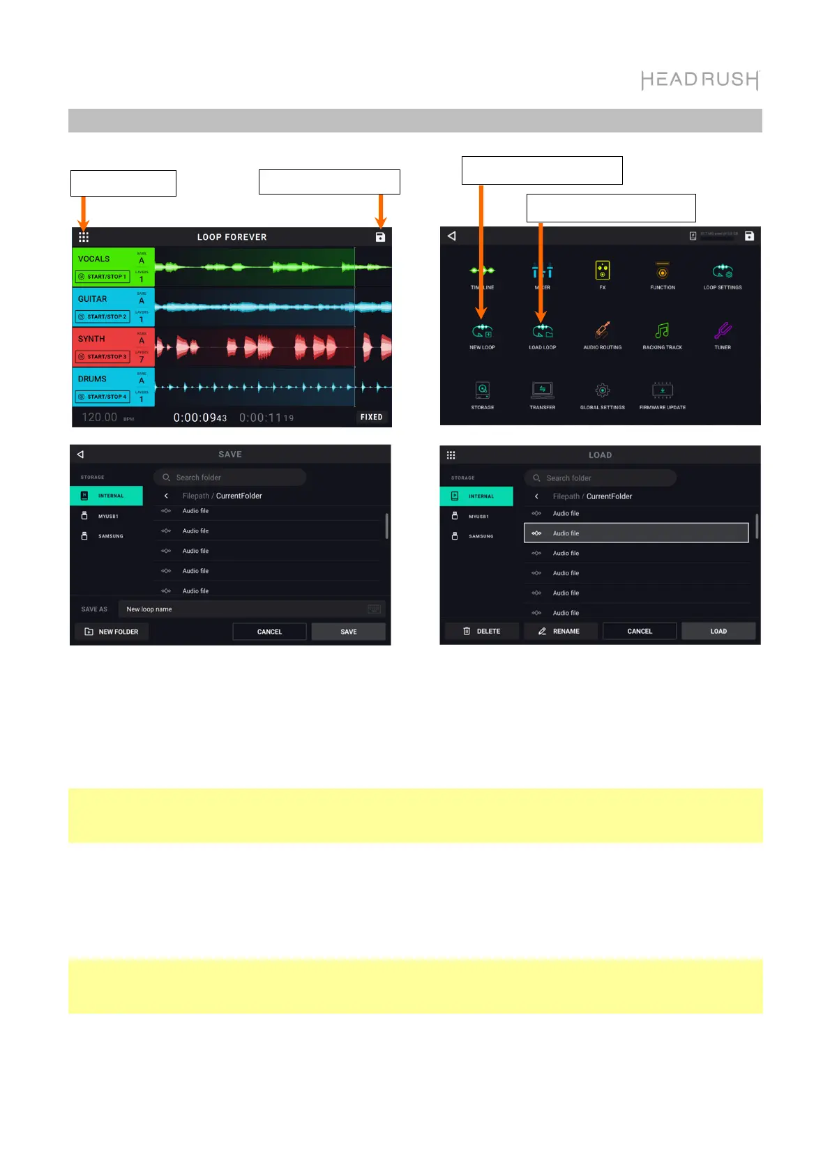 Navigation Menu pages. Tap Save (to save over the existing file) or Save New Loop (to save the loop