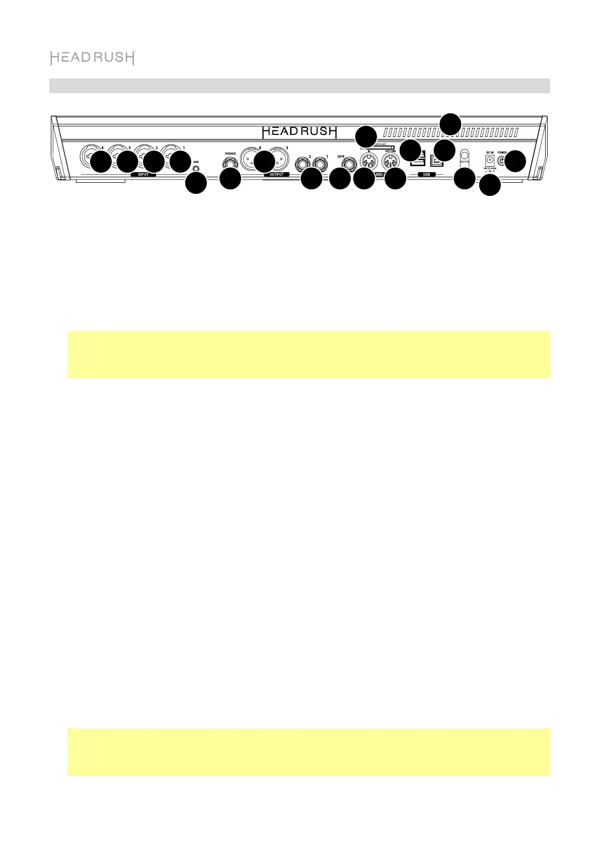 4. Ventilación: Asegúrese de que esta ventilación no se encuentre obstruida mientras utiliza el HeadRush