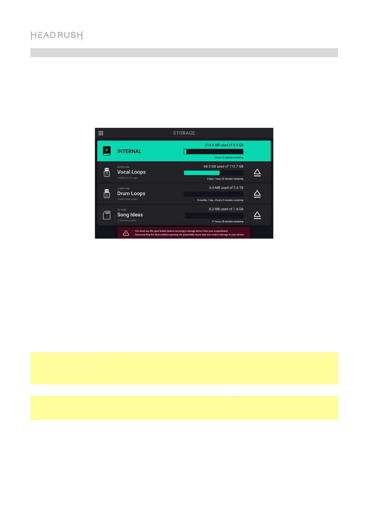 A medida que crea y guarda sus bucles, es posible que el almacenamiento interno de HeadRush