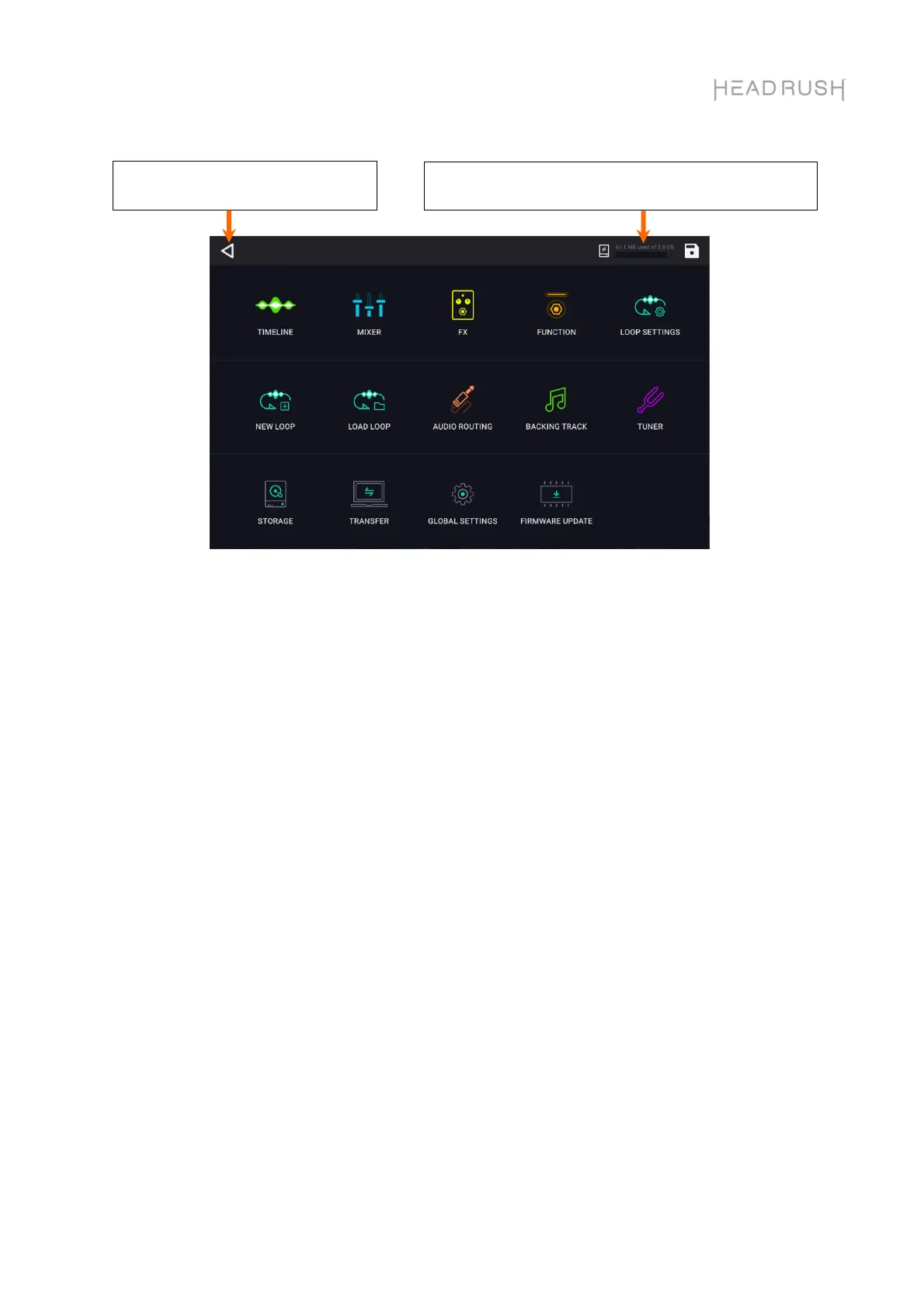 • Timeline : Appuyer sur cette icône permet d’accéder à la page de la ligne de temps du HeadRush