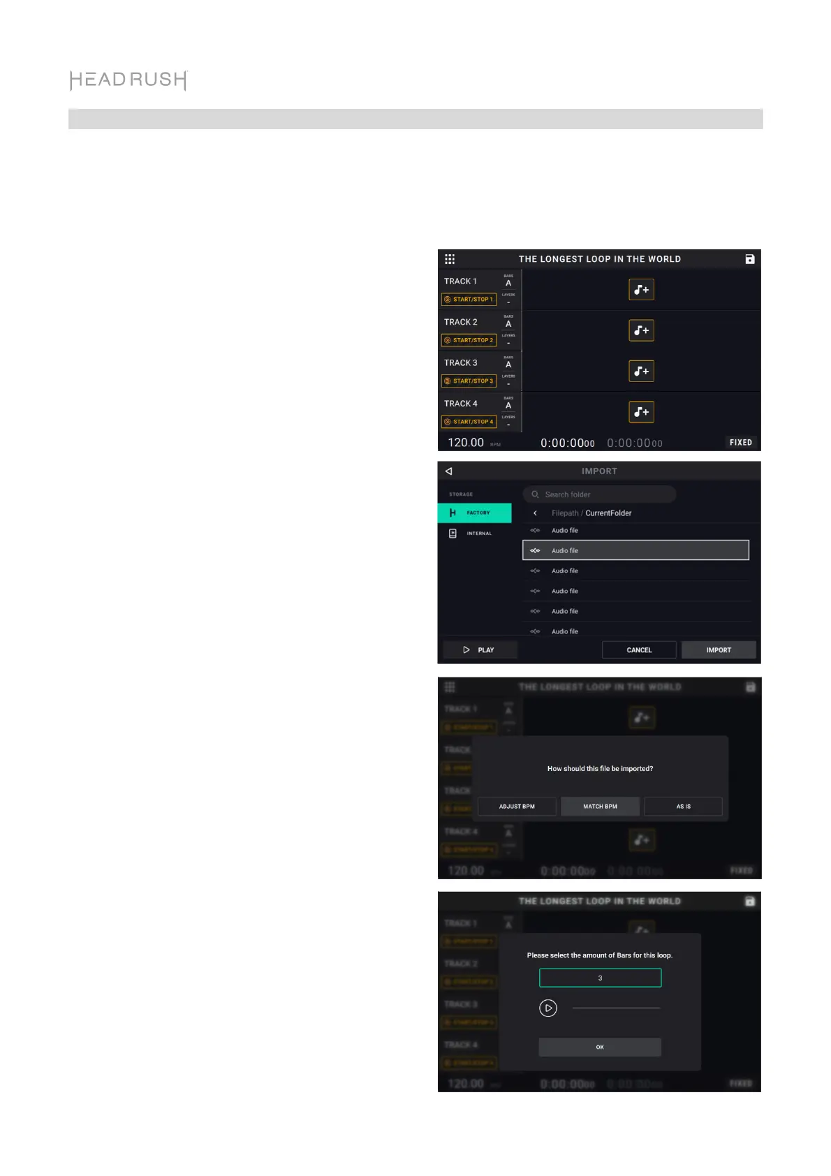 audio .WAV ou .MP3 (tel qu'un rythme de batterie enregistré) directement dans une piste de boucleur