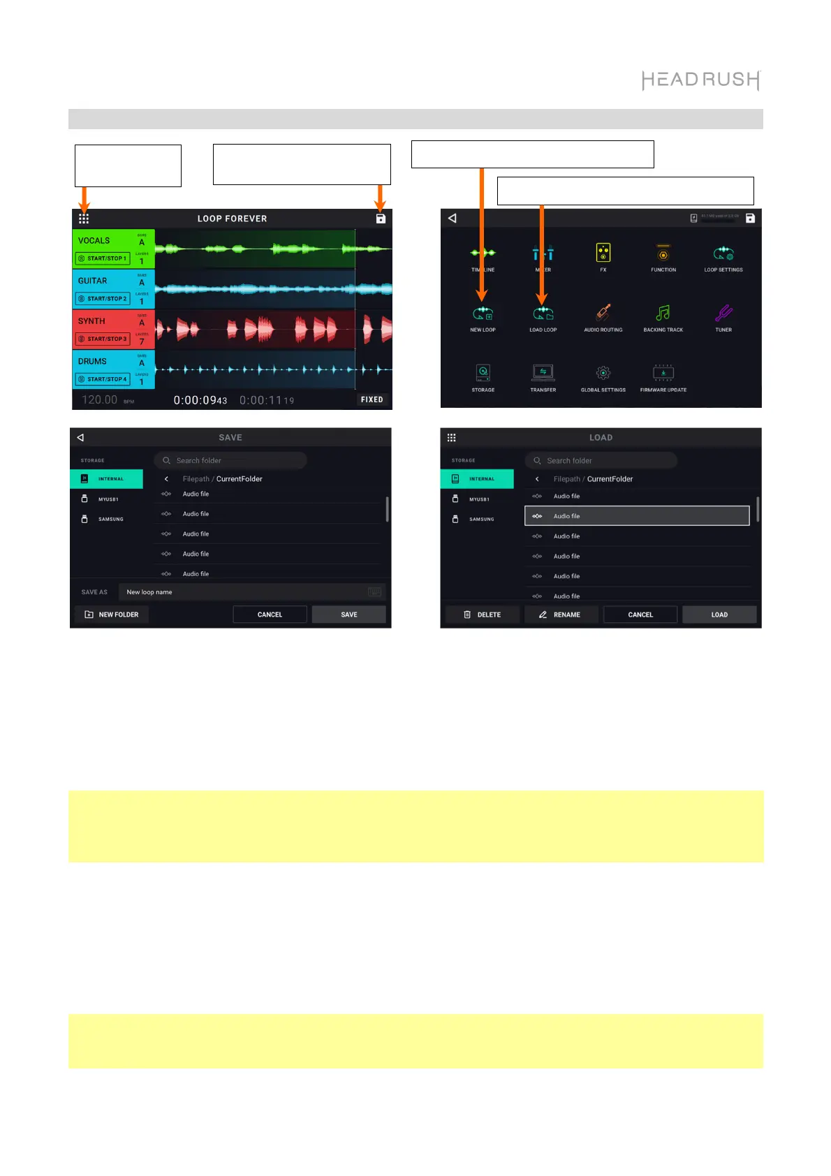 Pour charger une boucle précédemment sauvegardée, appuyez sur l'icône du menu de