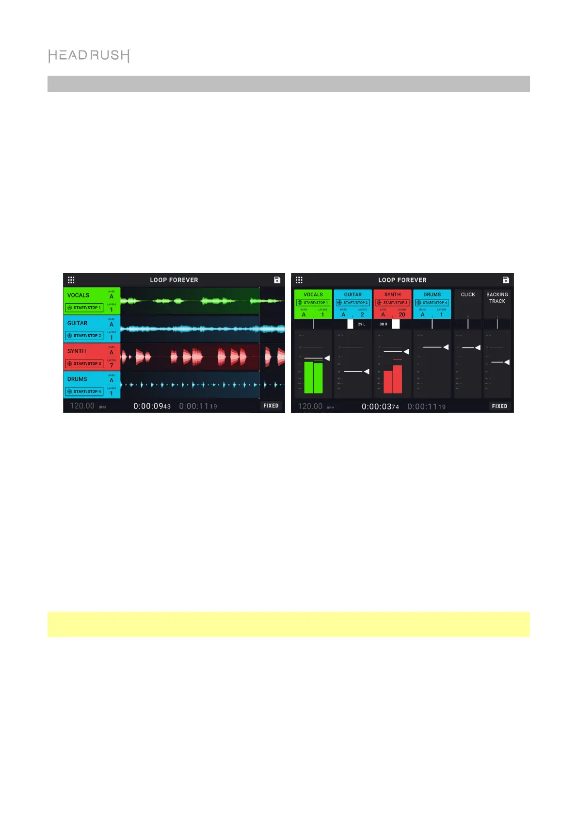 The HeadRush Looperboard lets you record audio onto four tracks and store each set of four tracks