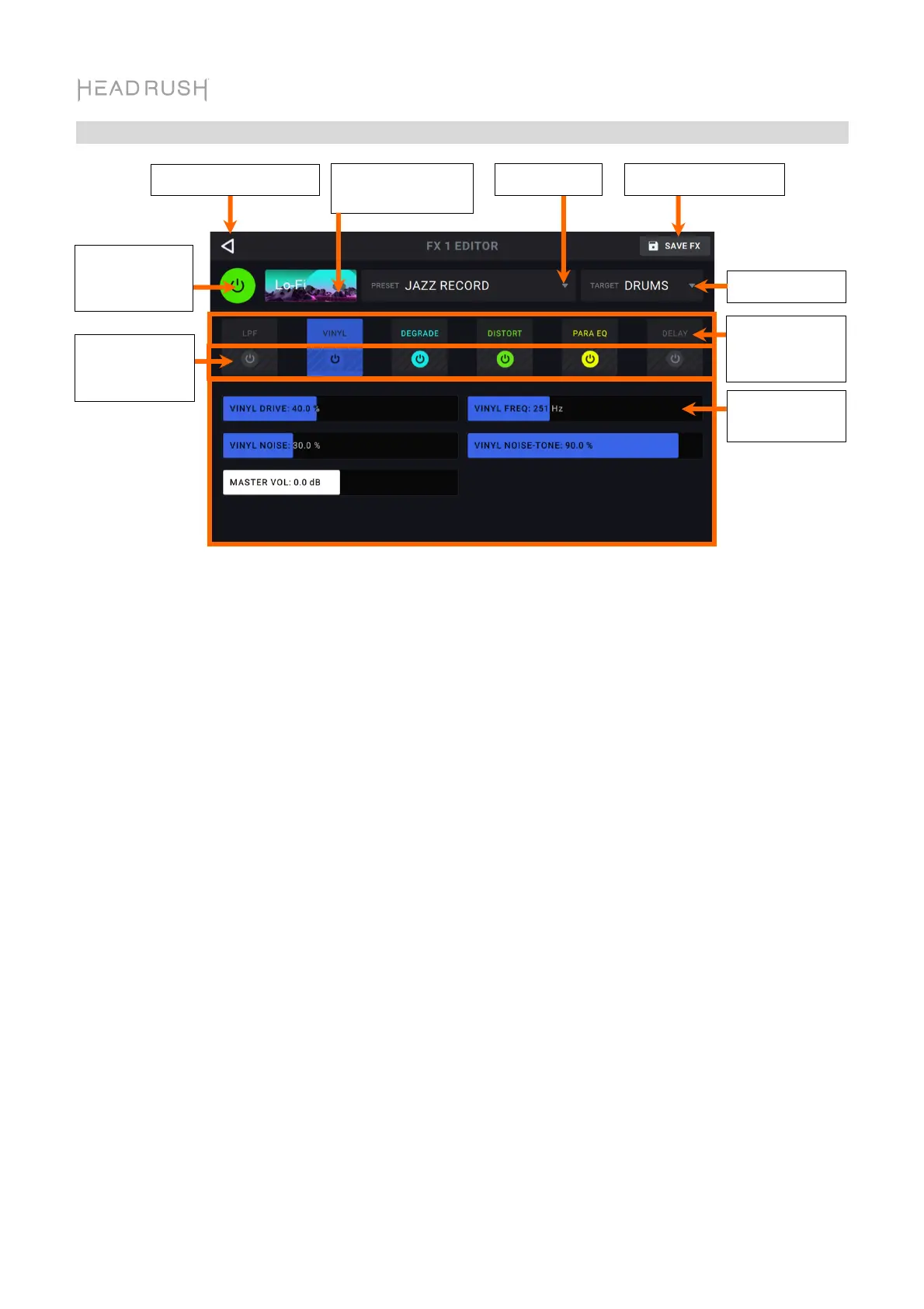 den Namen des einzelnen FX-Racks und anschließend auf einen Parameter-Schieberegler im unteren