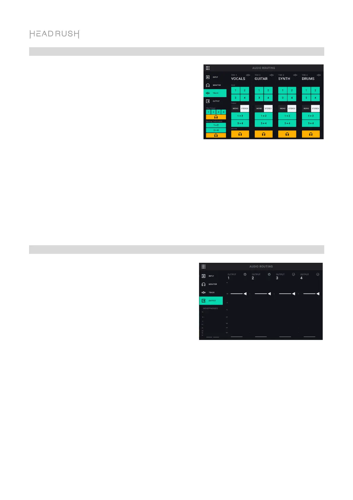 Um einen Track zum Kopfhörerausgang zu routen, tippen