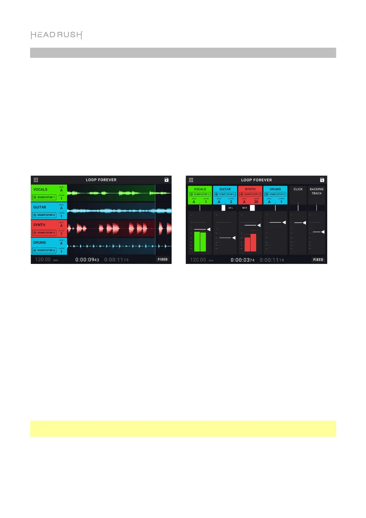 HeadRush Looperboard lets you record audio onto four tracks and store each set of four tracks as