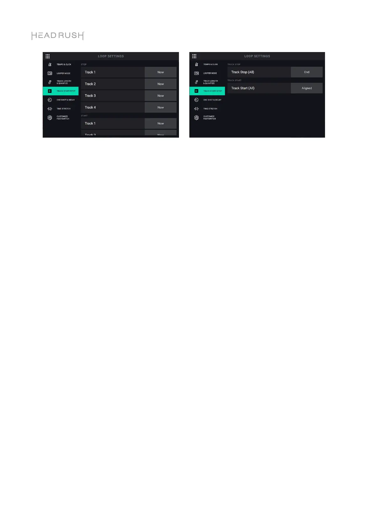 Track Stop: This setting determines how a track stops when using the Sync and Serial-Sync looper