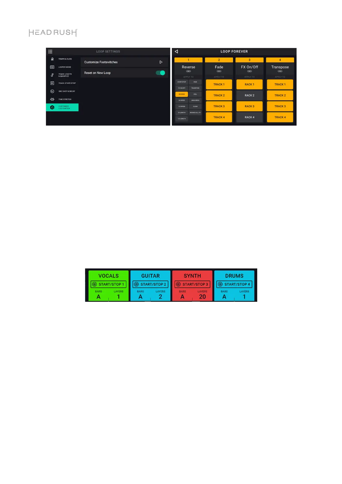 You can customize each track •Stop/-Undo footswitch to perform the function for one looper track