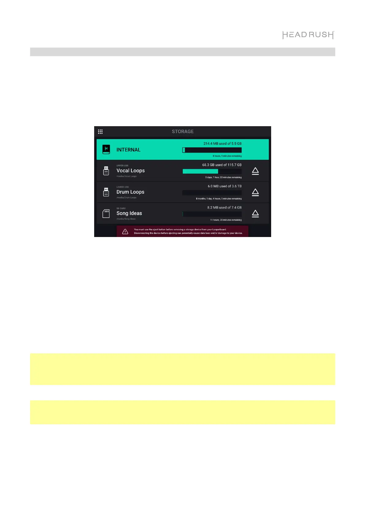 storage devices from HeadRush Looperboard while it is powered off. Alternatively, tap the device’s