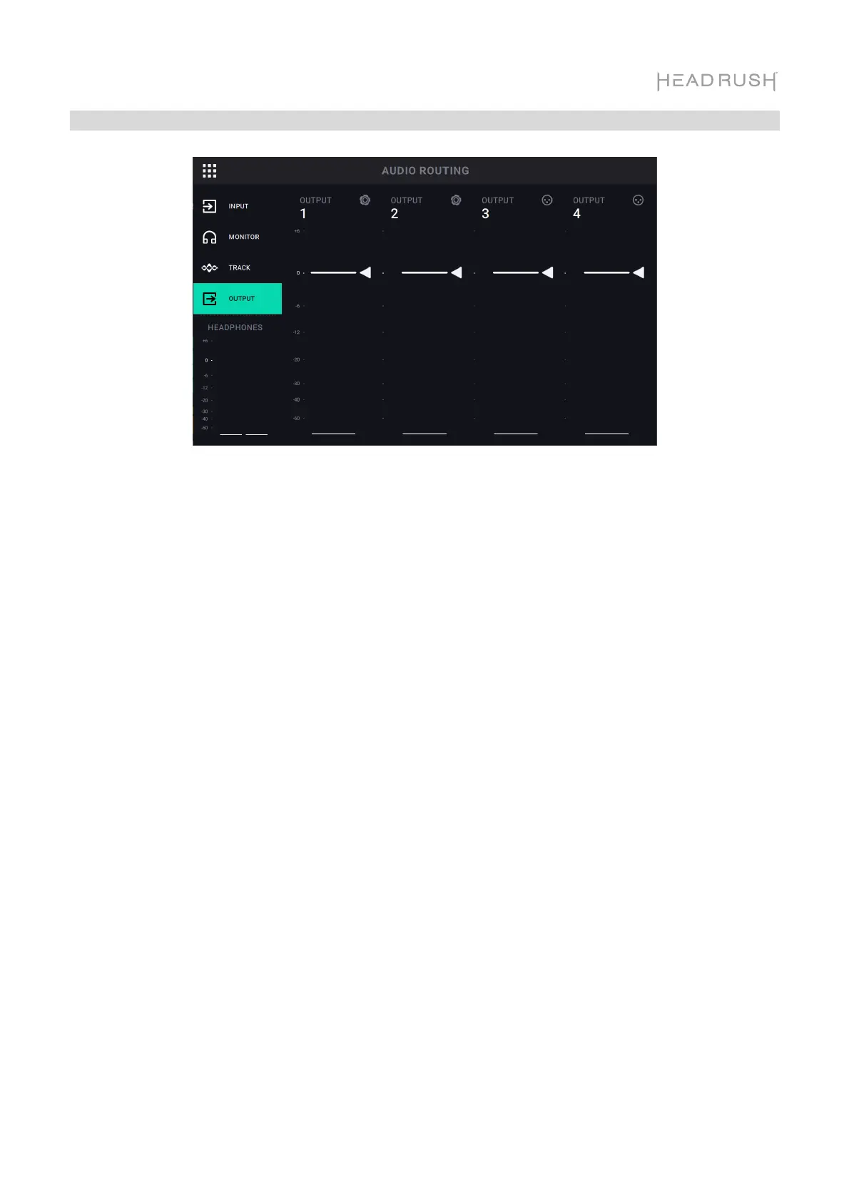 To adjust the output level of an individual output, tap and drag the white line at the top of its
