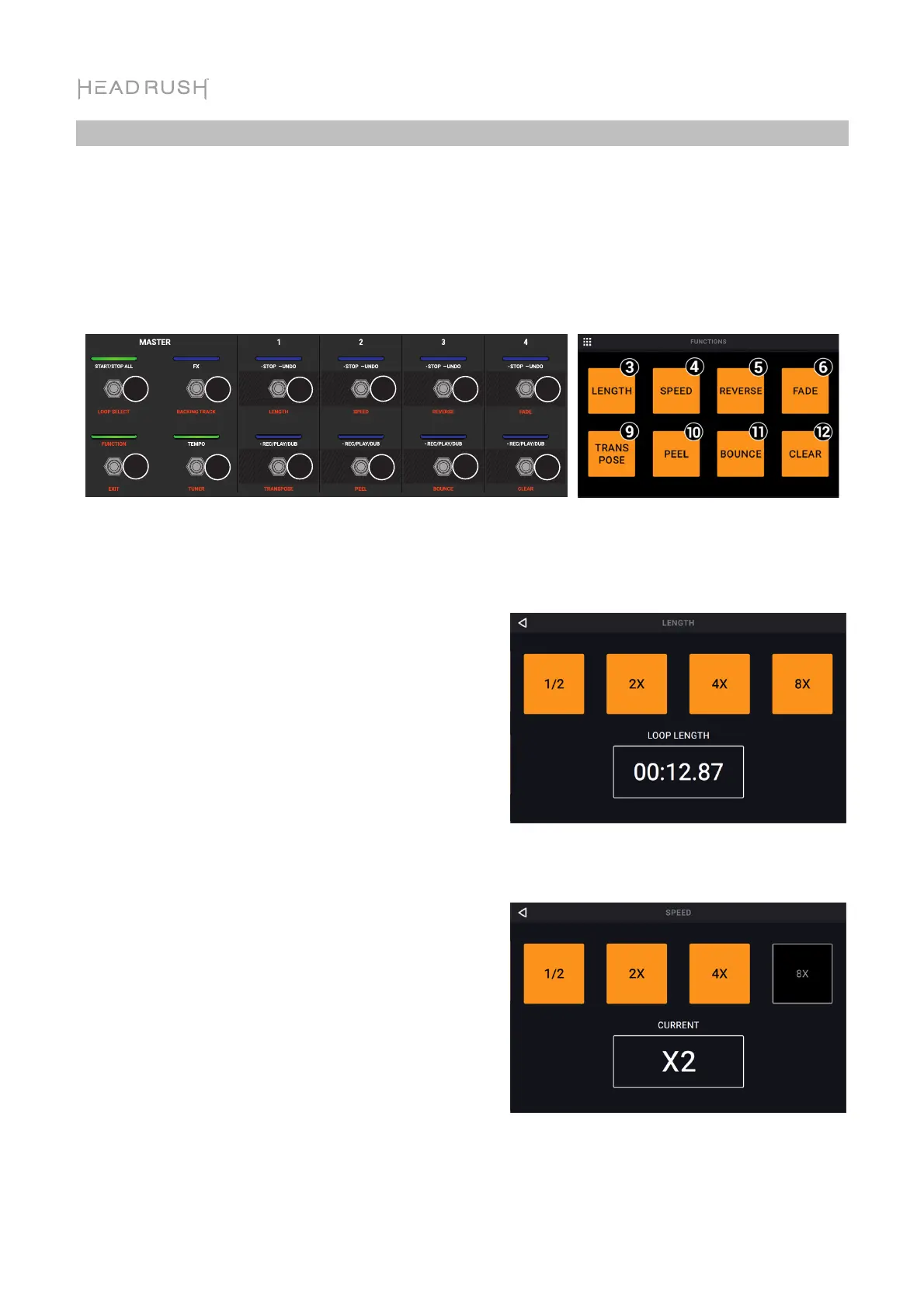 To select a function, press the corresponding footswitch (labeled on the top panel in orange)