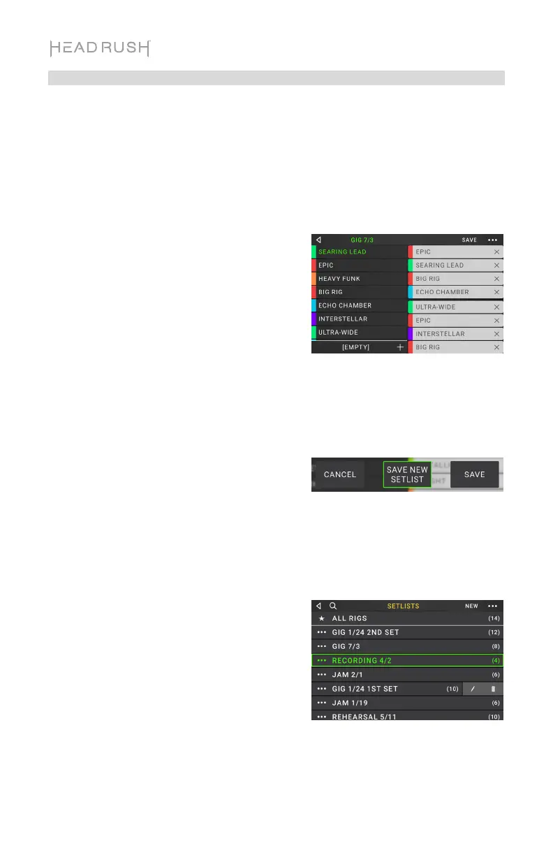 performance; you can save a setlist of just those rigs so you don’t have to spend time searching