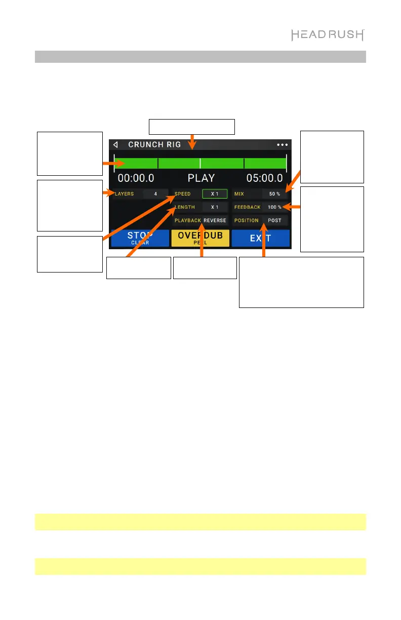 bucle. El interruptor de pedal ahora se llama Overdub (sobregrabar) y el indicador del interruptor de