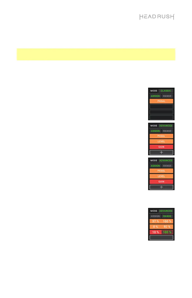 Pour définir le mode de la pédale d’expression, tapez sur le bouton au-dessus de Range dans le