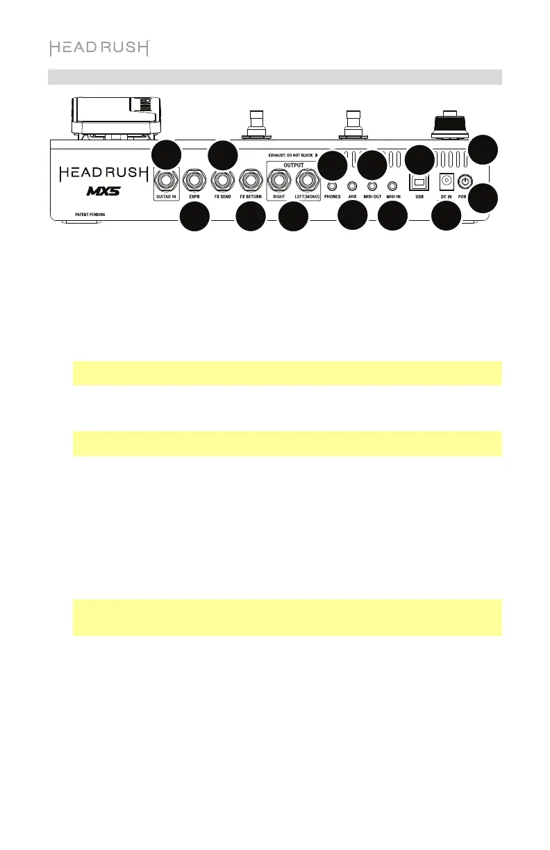 12. Interruttore di alimentazione: premere questo tasto per accendere l’HeadRush MX5.