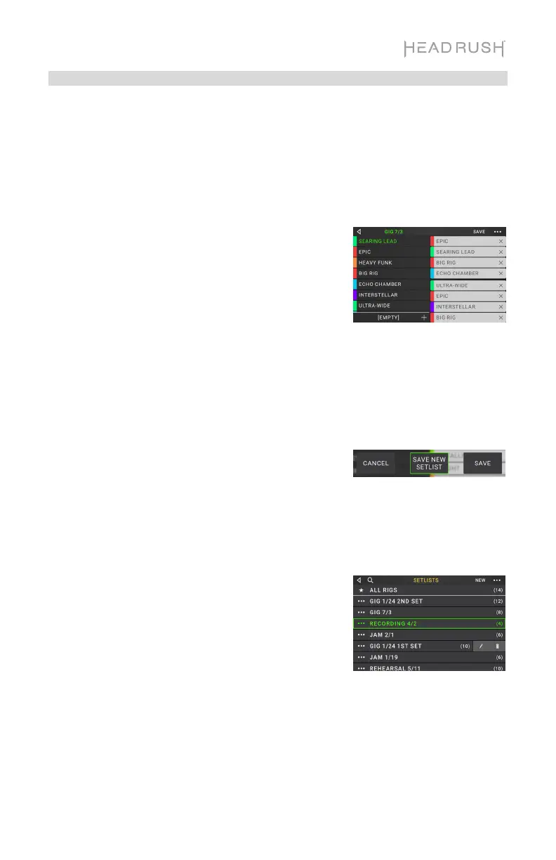 Per salvare una setlist, toccare Save nell’angolo superiore destro.