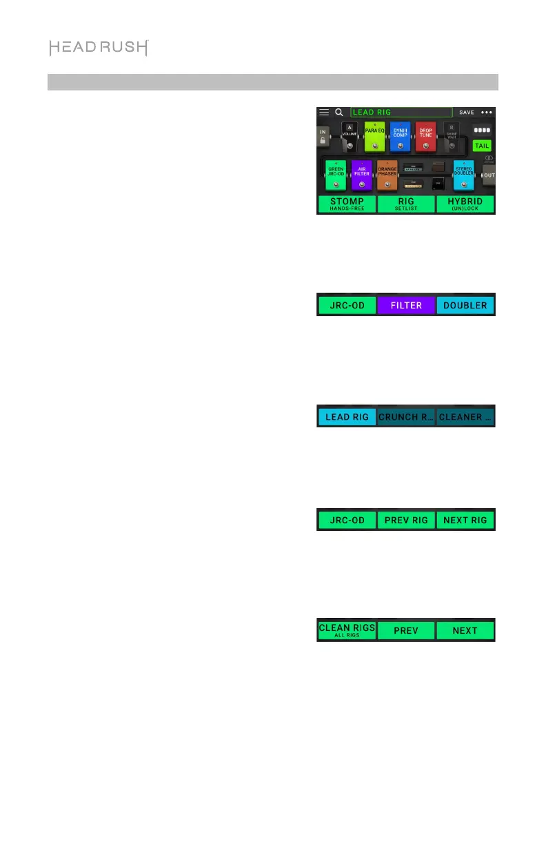 • To select Rig mode, press footswitch 2.