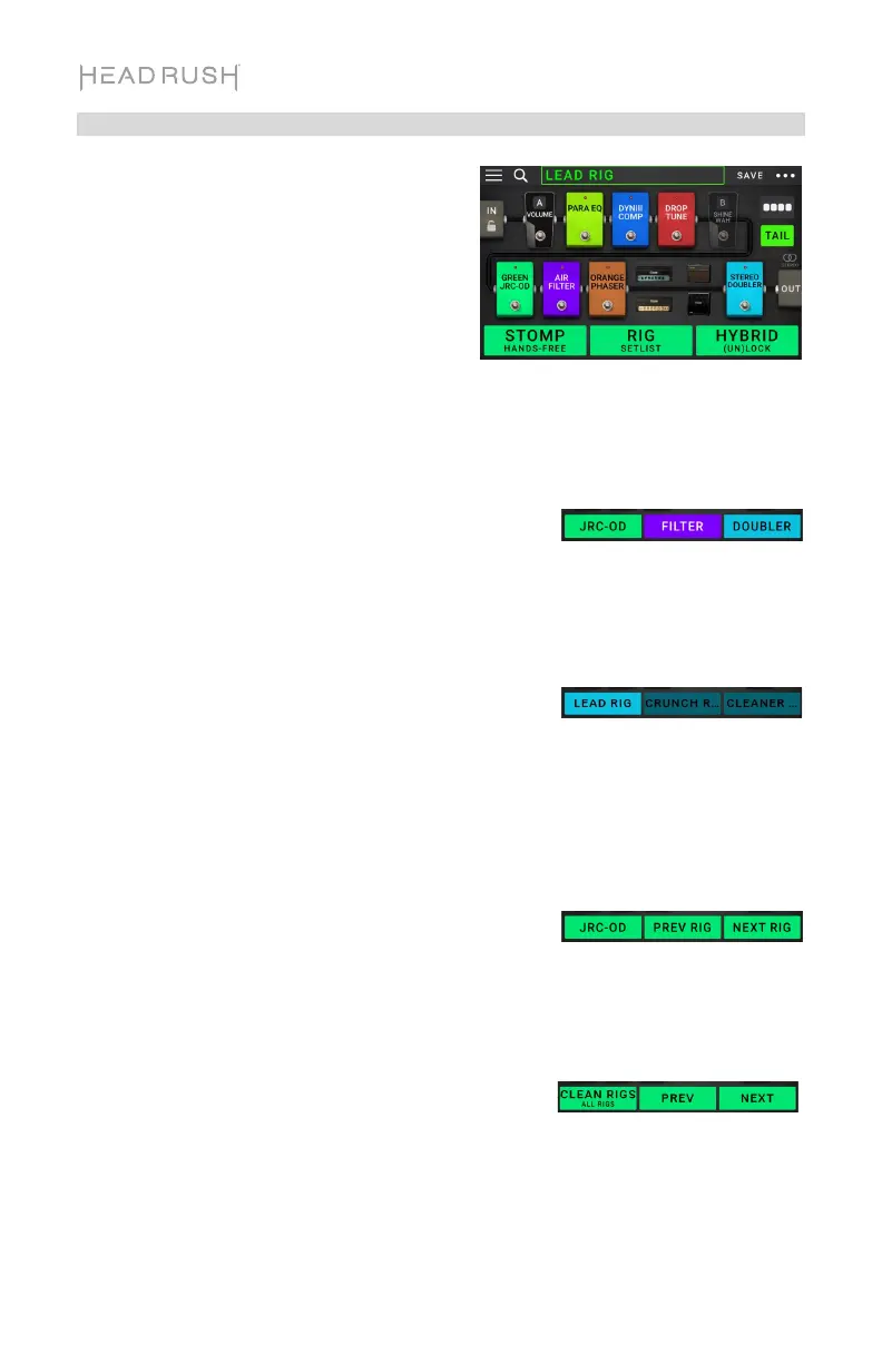Modi: Stomp, Rig, Hybrid und Setlist.