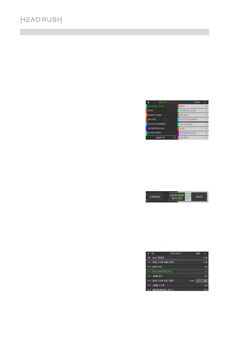 Sie können Setlisten verwenden, um Ihre Rigs zu organisieren. Eine Setliste ist eine gespeicherte
