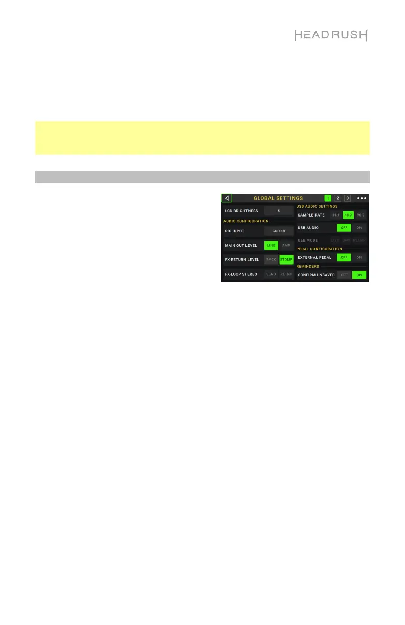 gesamten Betrieb des HeadRush MX5 zu konfigurieren.