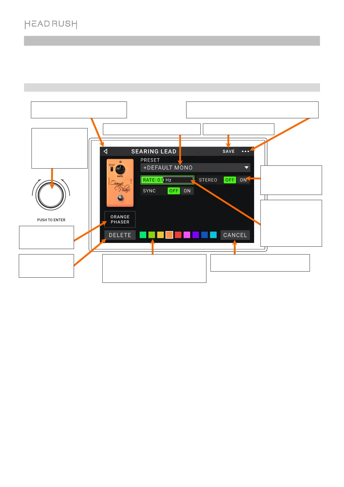 of any model (amp, cab, or effect), the input (the In/Lock icon), the output (the Out icon), or mix (the Mix icon).