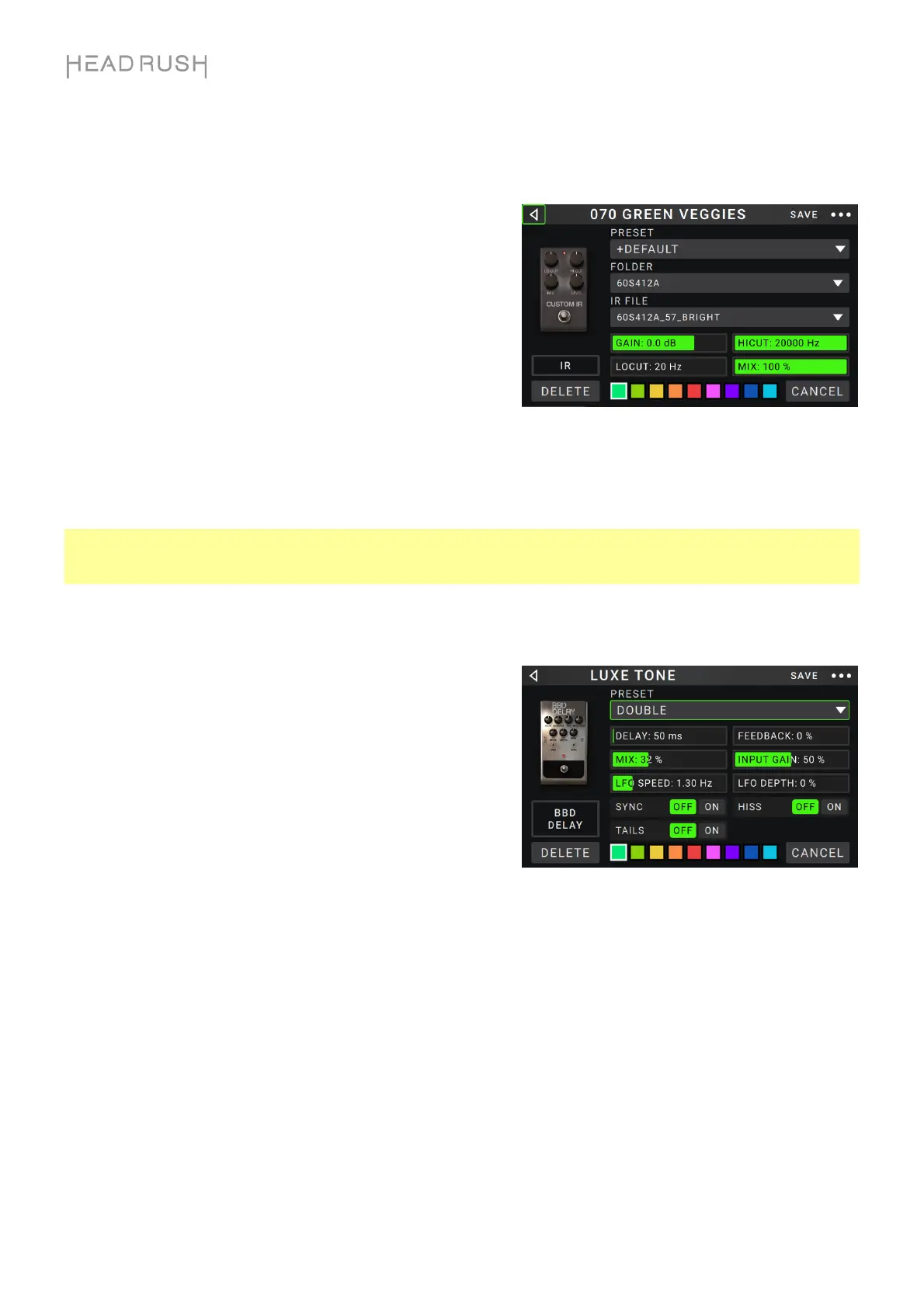 sample IR type. To save DSP power for adding more effects to your rig, use the 1,024 sample IR type.
