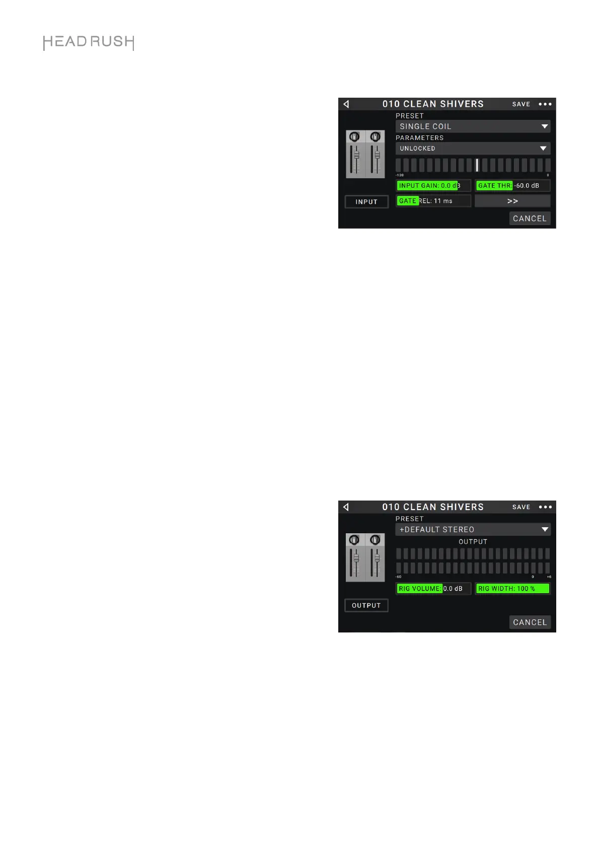 Rig Input: This setting determines whether the rig’s input signal is taken from the guitar input (Guitar) or the