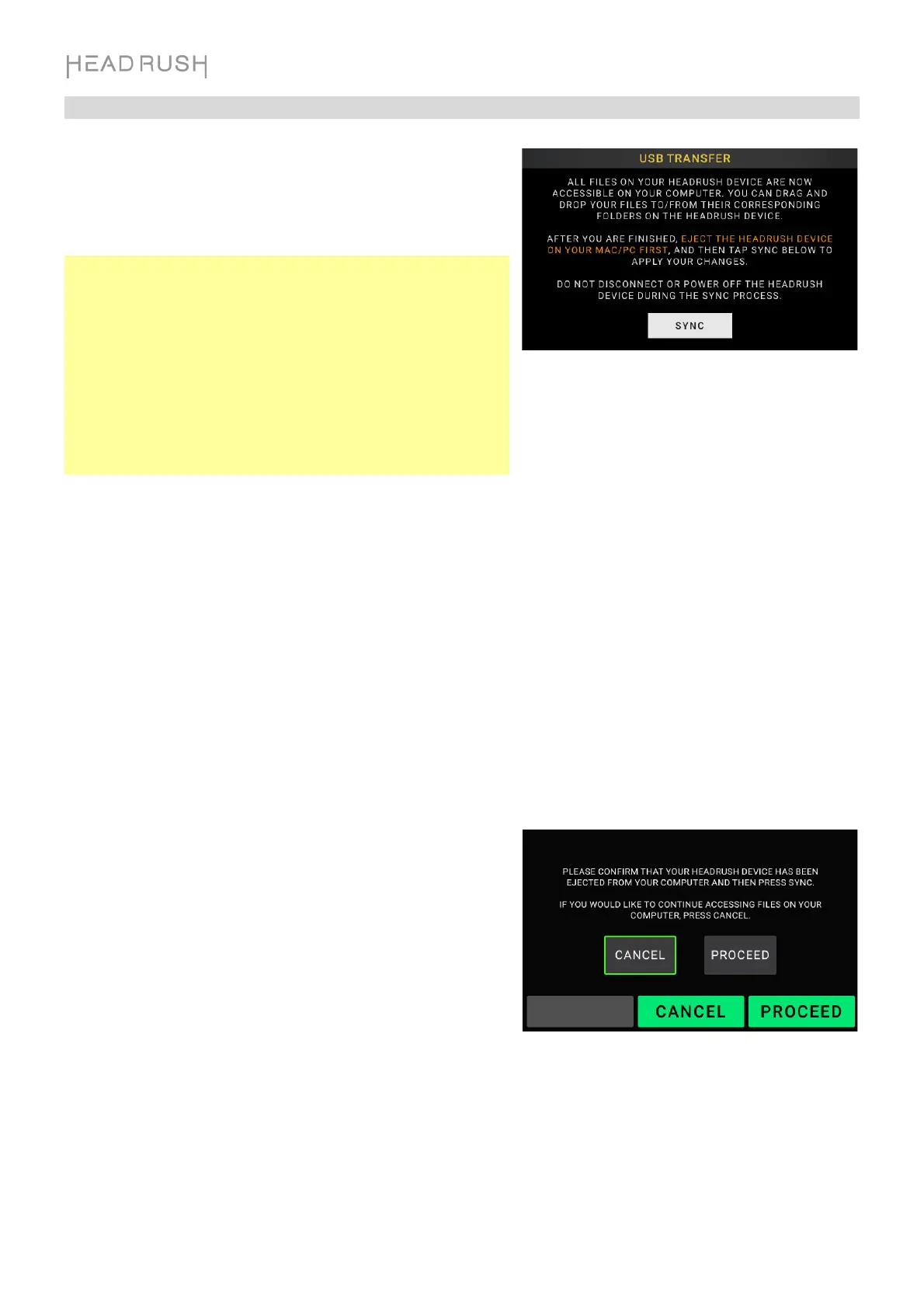 computer. Note that any changes you make to the contents of your HeadRush are immediate and cannot be