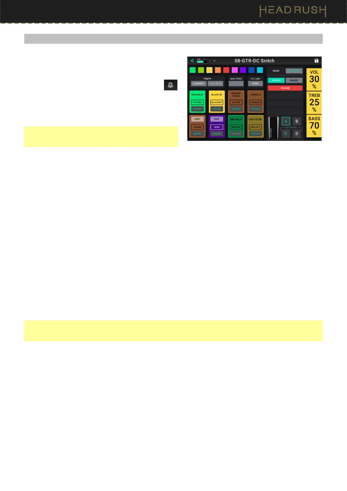 of the corresponding footswitch indicator when HeadRush Prime is in the Rig footswitch mode.