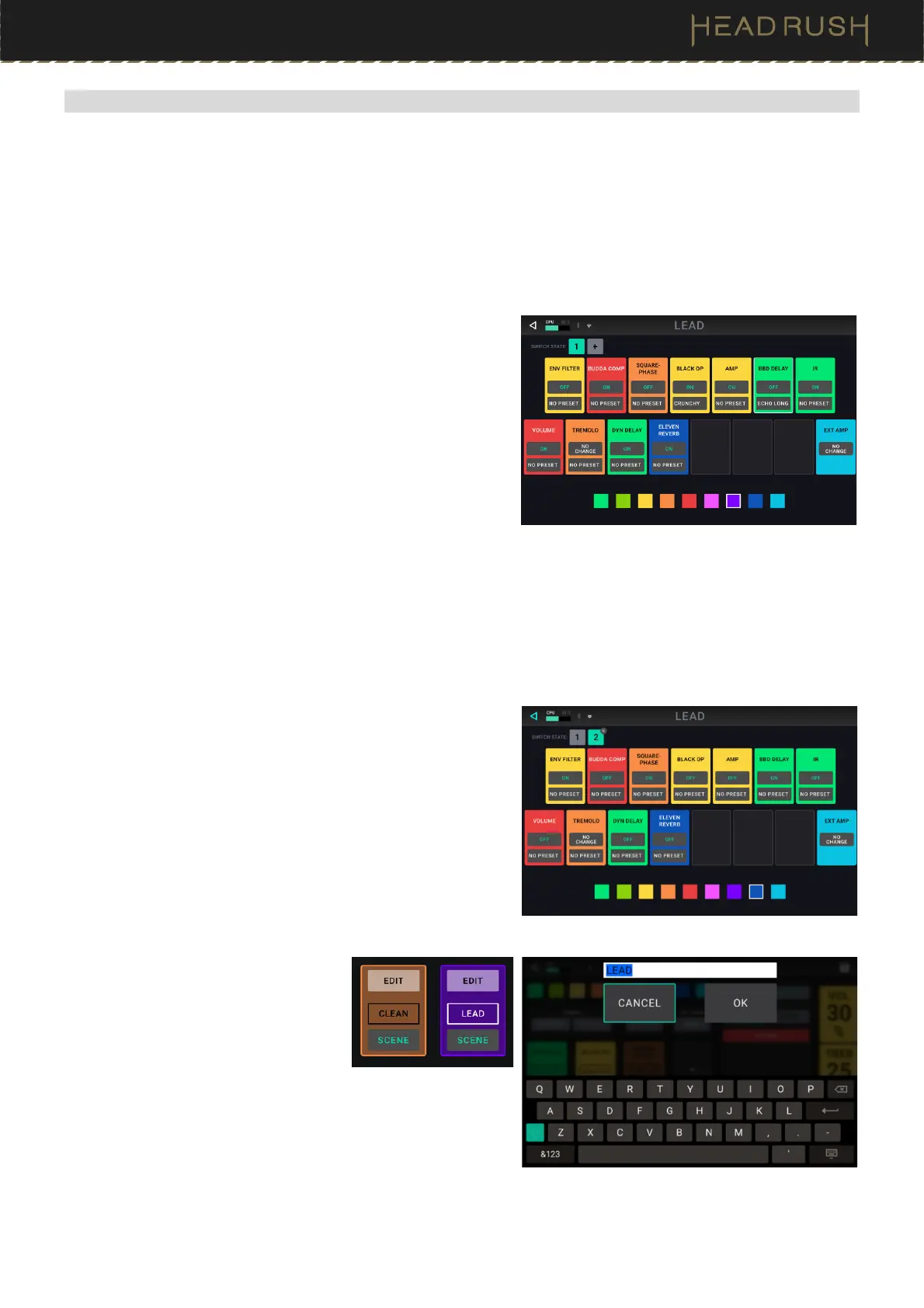 using one footswitch press. When you press the footswitch assigned to that scene, all blocks included in that scene