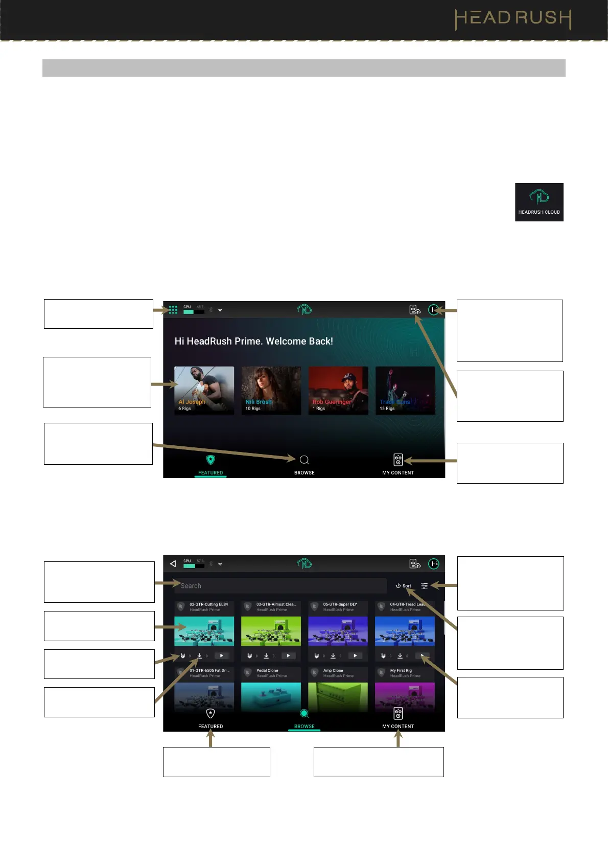 rigs and clones from HeadRush Artists as well as other HeadRush Prime users. You can also upload rigs and clones