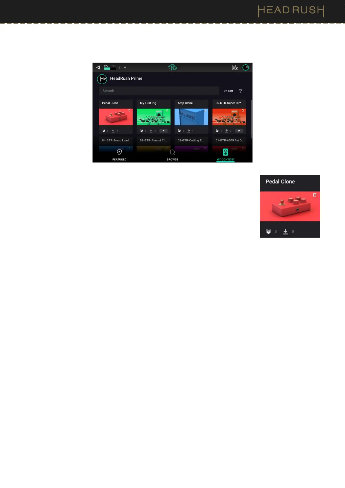 On the My Content tab, you can also delete content by tapping the rig or clone title to