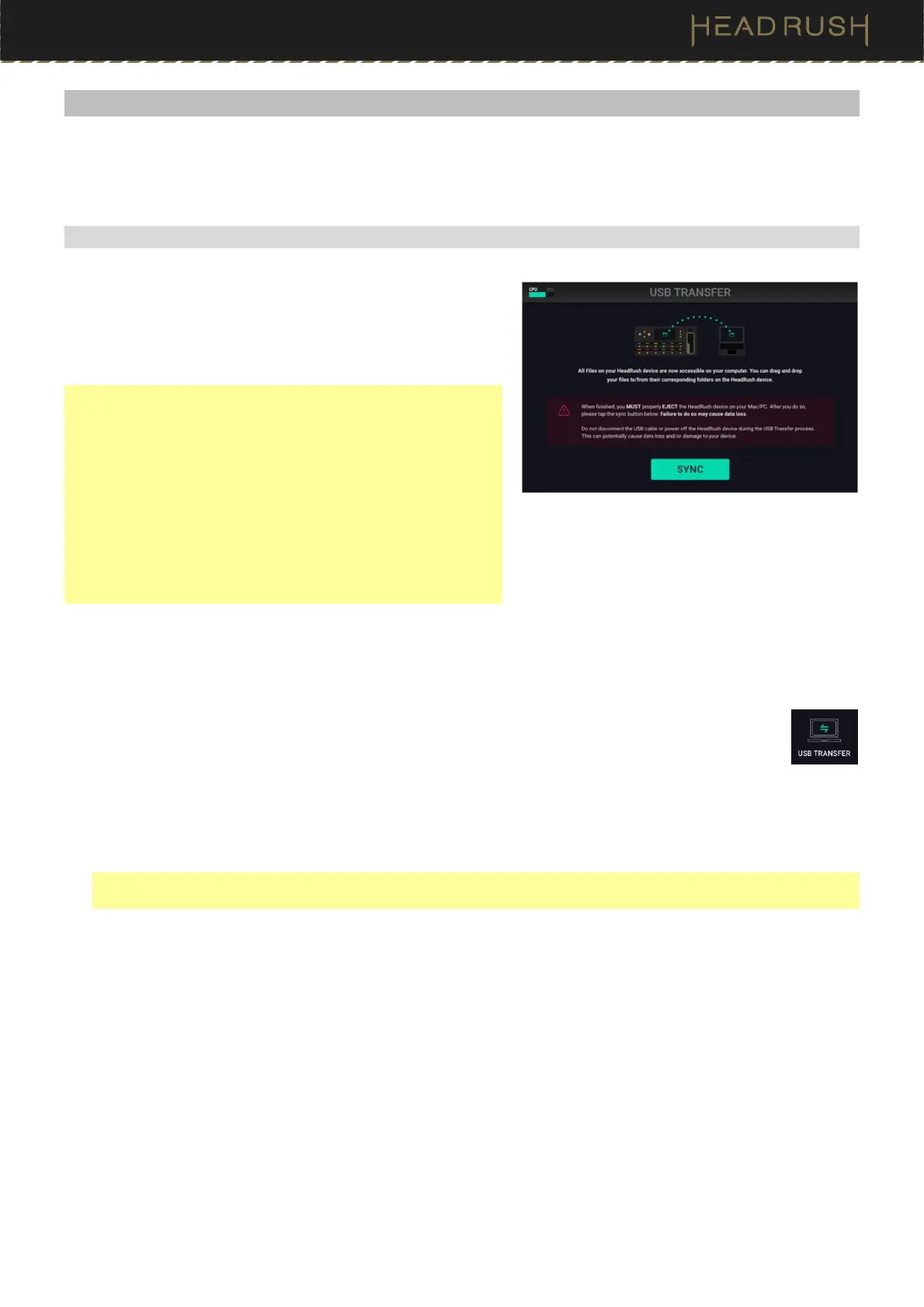 6. IMPORTANT: When you are finished transferring contents, you must unmount/eject the HeadRush drive from