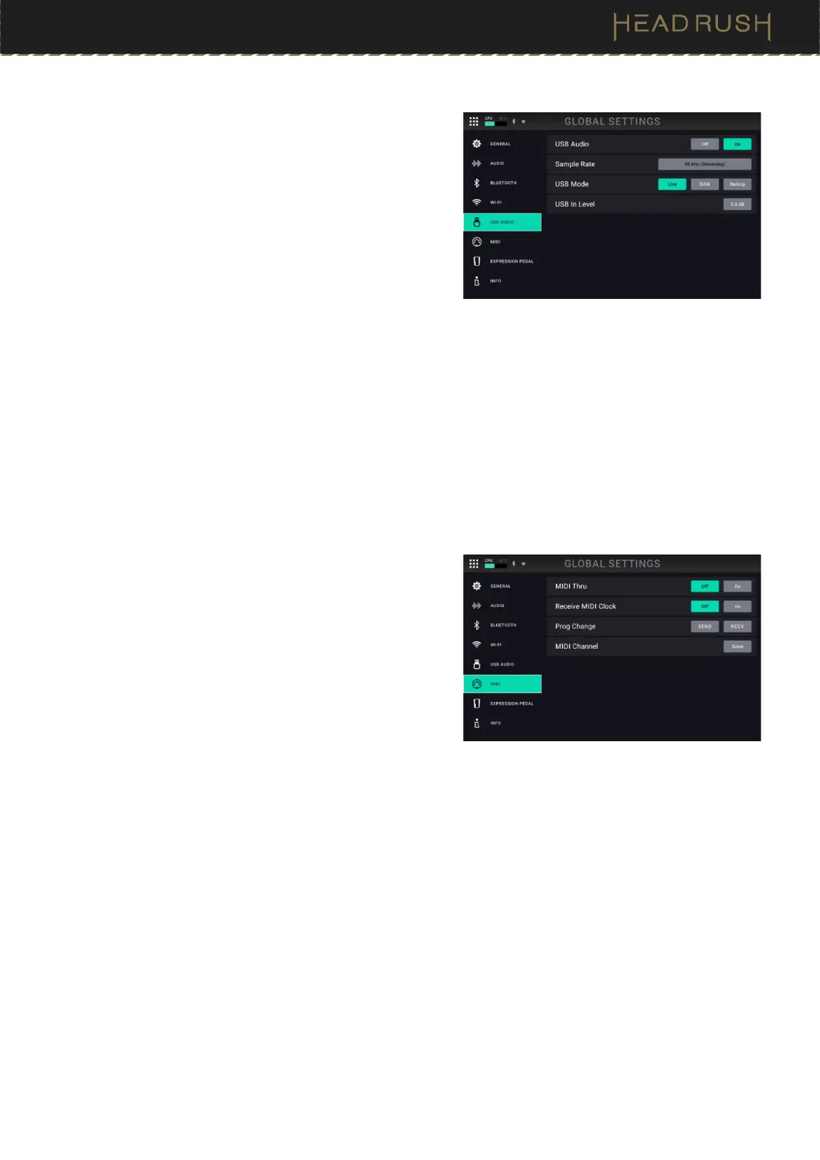 settings affect only HeadRush Prime’s MIDI Input and MIDI