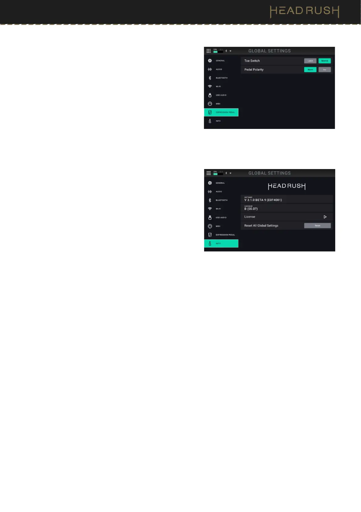 version, access HeadRush Prime’s license information, as well