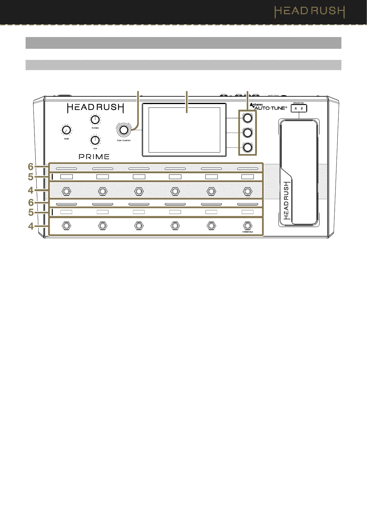 This full-color multi-touch display shows information relevant to HeadRush Prime’s current operation. Touch