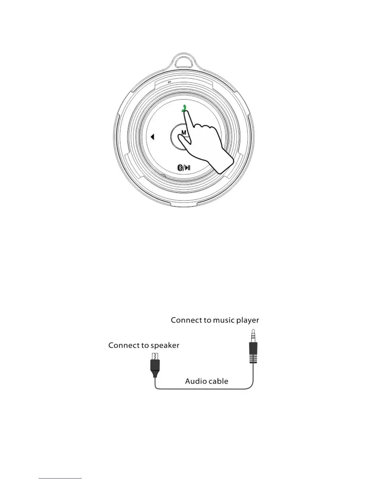 Connect the speaker to the music player with the audio stereo jack and the